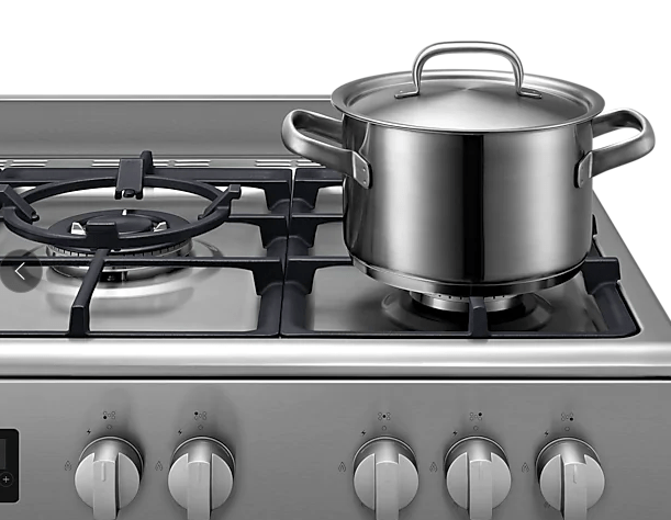 Cook many different types of dish on the Flexible Cooktop. Its five burners include a Triple Burner that cooks quickly and evenly. The Rapid Burner can rapidly go from high to low heat. And a Simmer Burner will gently simmer, melt or warm food. Its cast iron grates also ensure better stability.